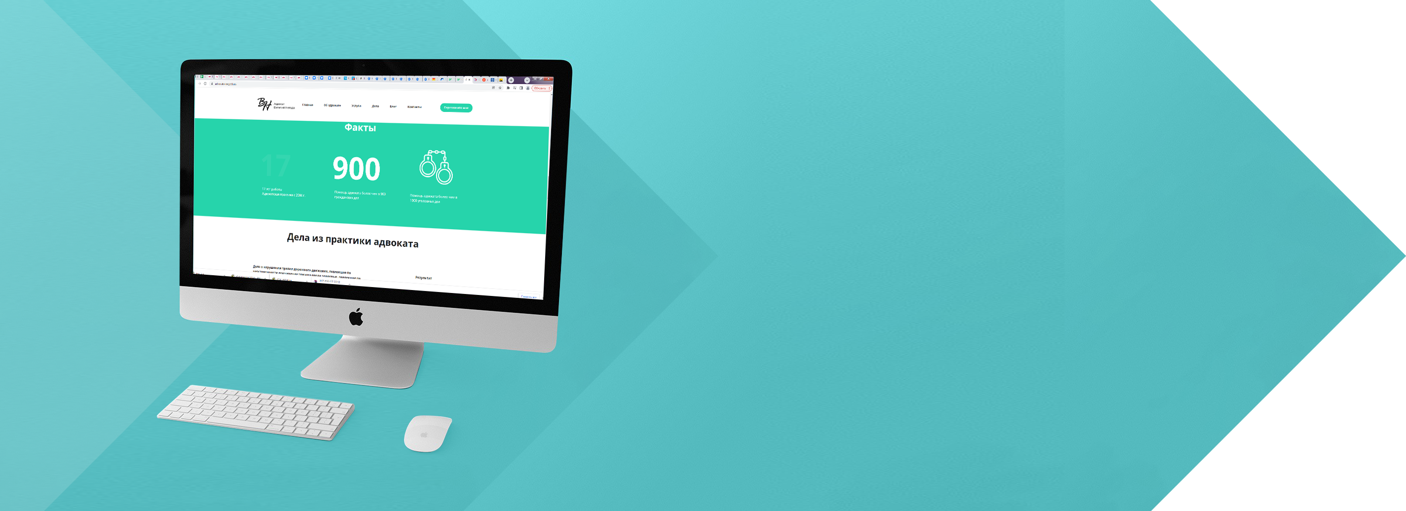 В финале работы заказчик попросил сделать сайт бирюзовым, а не синим. Мы были обязаны предупредить, что такие цвета больше подходят для ниши медицины и выбрали вместе подходящий оттенок, который соответствует юридическим услугам.