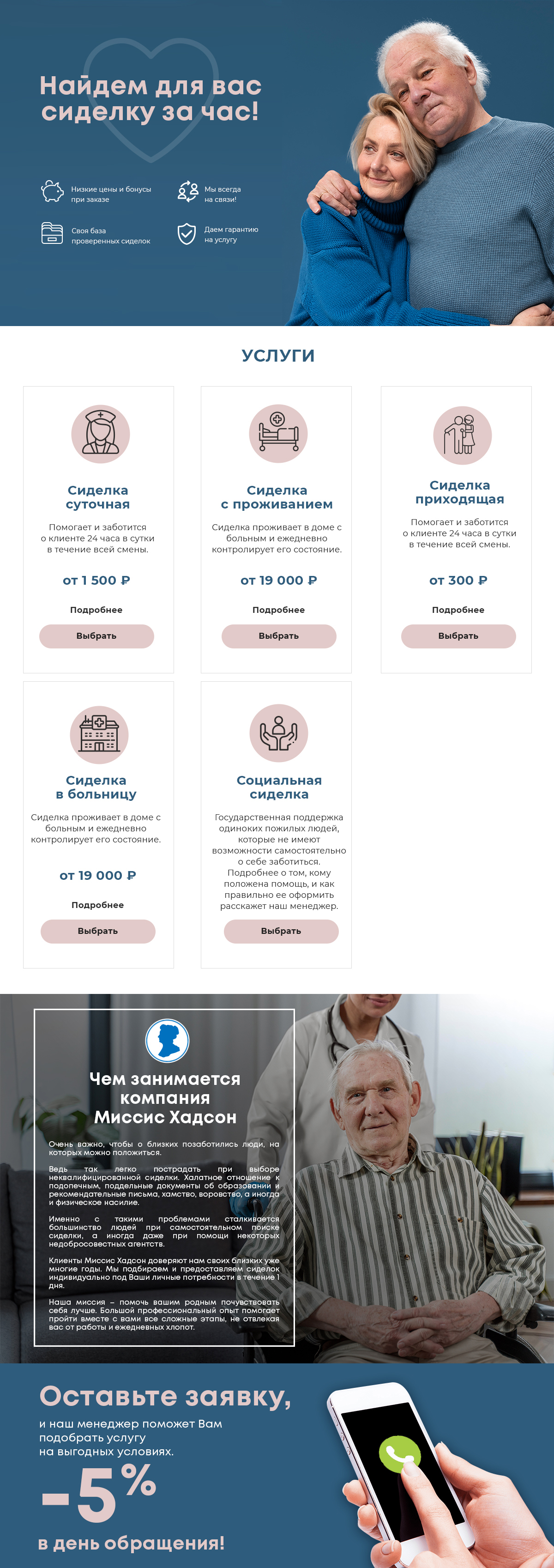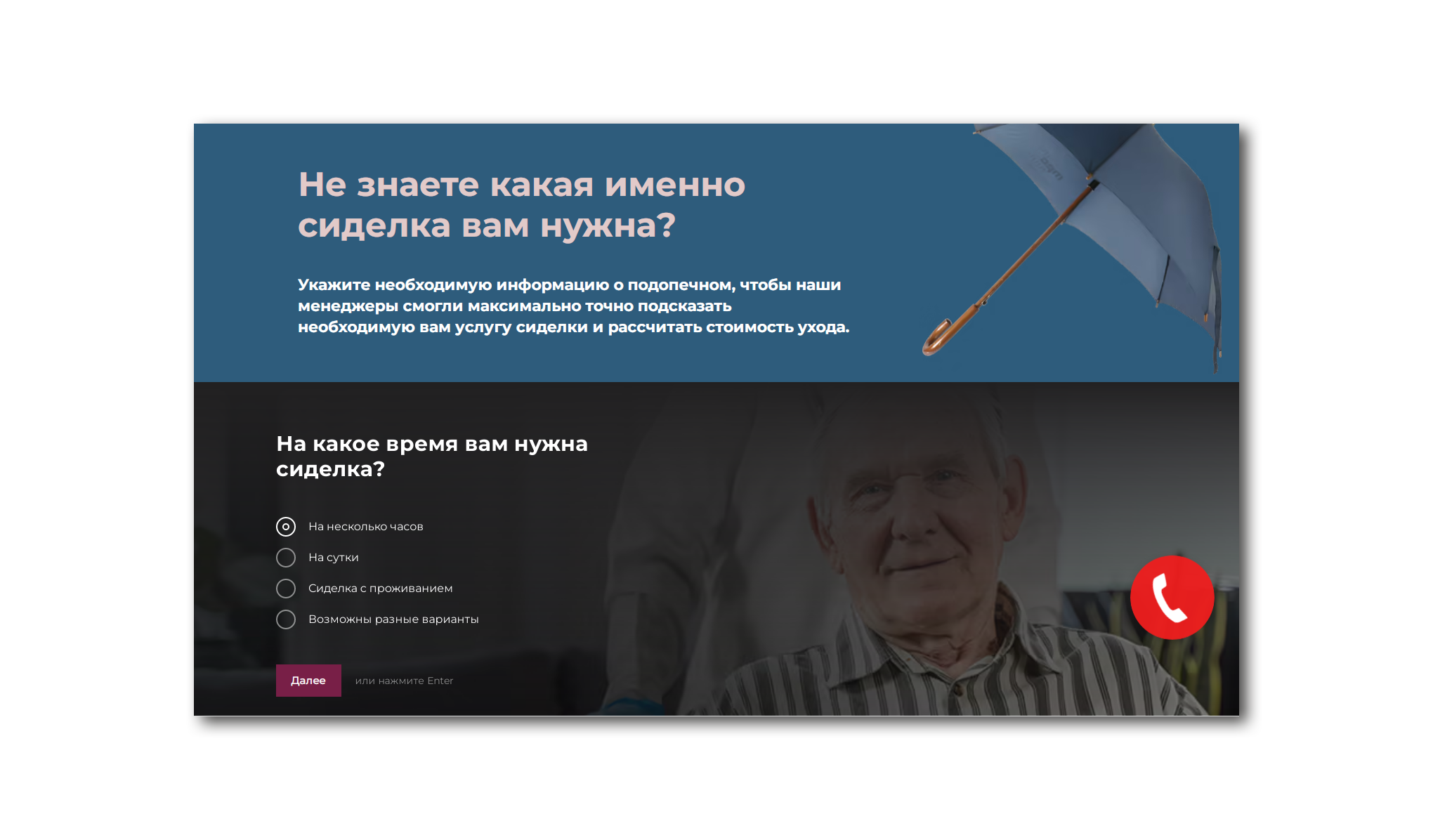 К нам обратилась компания по предоставлению услуг сиделок. Проблема была в том, что у заказчика уже был сайт, который не приносил заявок.